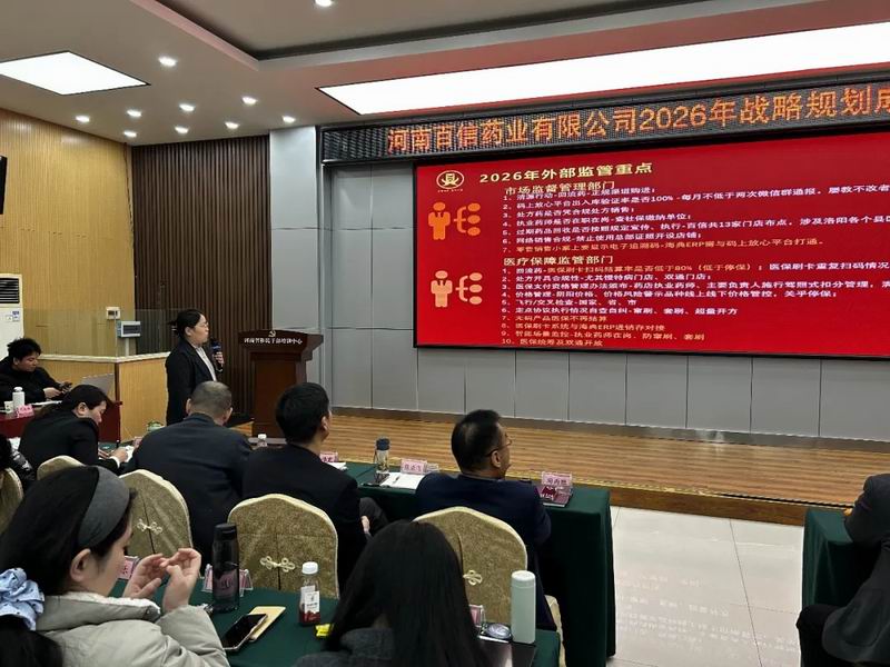 1月24日,七大战略研讨组全面启动:批发事业部聚焦渠道精耕、零售事业部谋划"智慧药房"升级、电商事业部探索全域营销新模型、新媒体健康管理部构建"内容+服务"健康生态、商品部(含生命科技小组)深化供应链与中医药创新、职能部门强化支撑保障,各组在组长带领下头脑风暴、反复推演,成果实时汇报、动态优化。***深夜,7份逻辑严密、举措扎实的2026年战略规划PPT全部定稿提交,标志着"目标-策略-行动-激励"闭环体系全面成型。