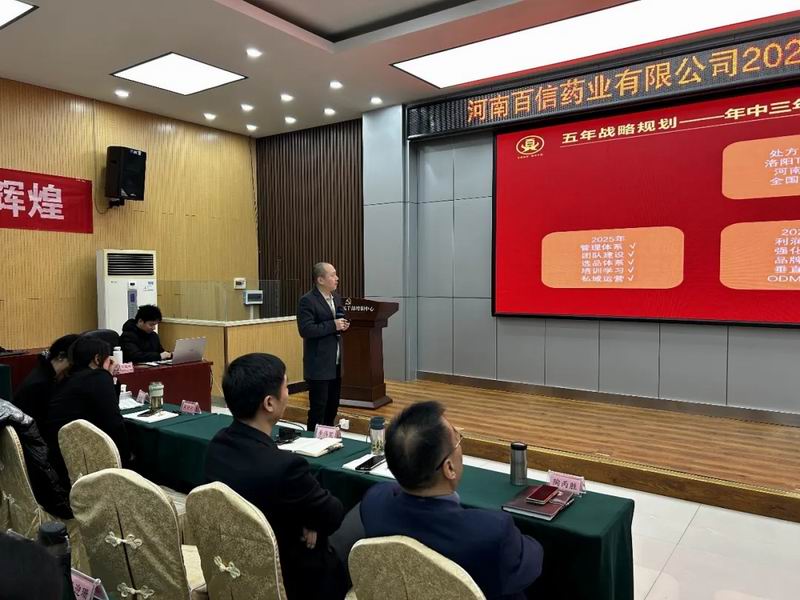 岁序更替,华章日新。2026年1月23日***25日,河南百信药业有限公司"2025年度复盘总结暨2026年战略规划会议"在河南大学干部培训中心(嵩县陆浑度假村)隆重举行。公司执行董事陶丙胜、总经理牛永国等领导班子成员携各部门负责人共计52人齐聚陆浑湖畔,以三天两夜的深度研讨与战略宣贯,凝聚发展共识,锚定奋进航向,为新一年高质量发展注入澎湃动能。